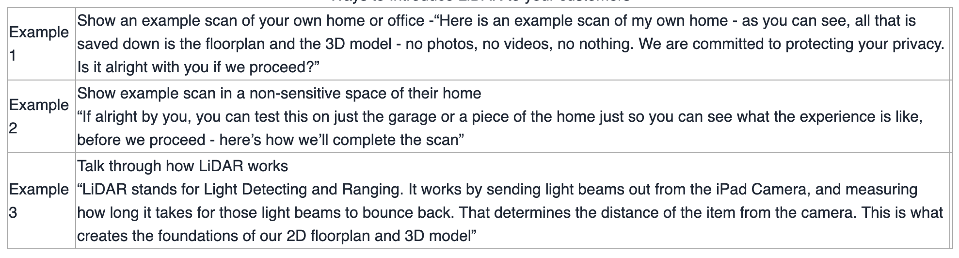 Curious about the best ways to talk about LiDAR with your customers? Check out our table of potential scripts below.